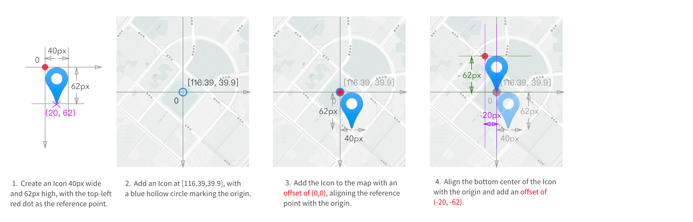 If users customize the point marker content, whether it is a custom Icon or custom content, it is necessary to reset the anchor position for the defined image. The setup method is as follows: